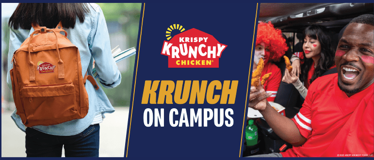 “By partnering with colleges and universities to bring Krispy Krunchy to campus, we are widening the reach that our product has with consumers. For four months of the year, students that eat Krispy Krunchy during their college semesters are not at school. They’re going to want that chicken while at home for the holidays or on summer break, and so they’re going to go to their closest c-store to get it,” said Alice Crowder, chief marketing officer at Krispy Krunchy Chicken.